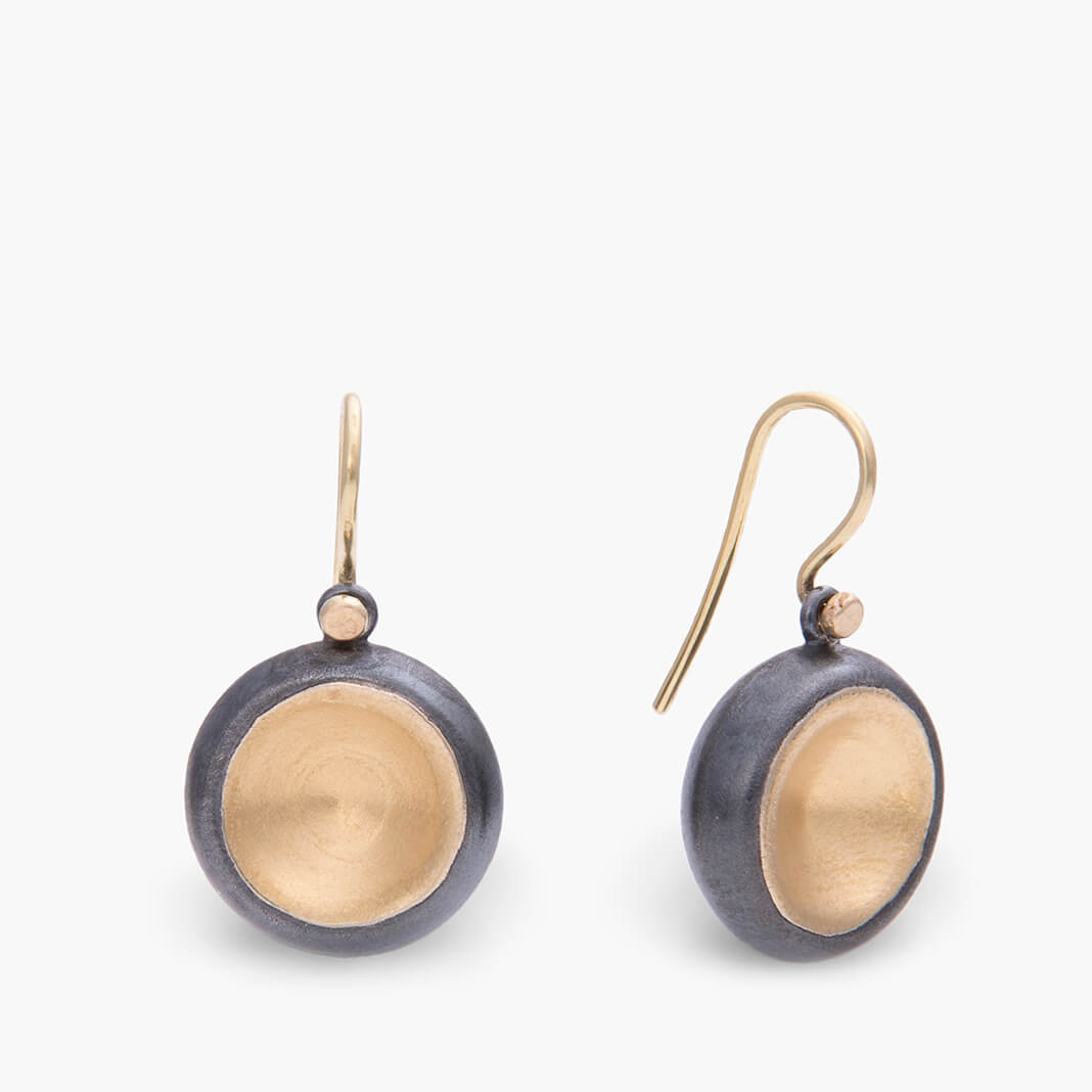 Ohrringe, Silber 925 geschwärzt, Gold 750, Feingold o_ea_16