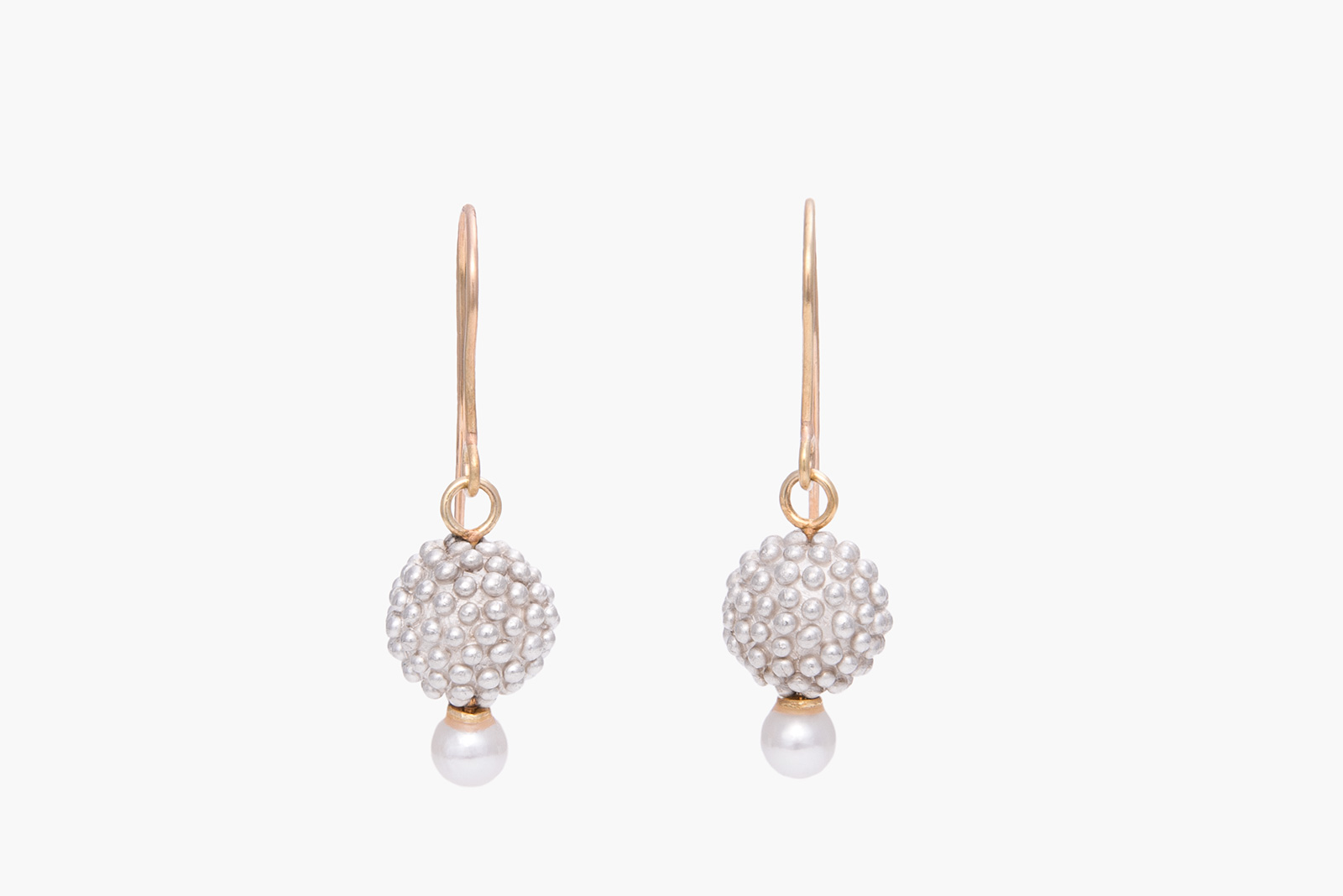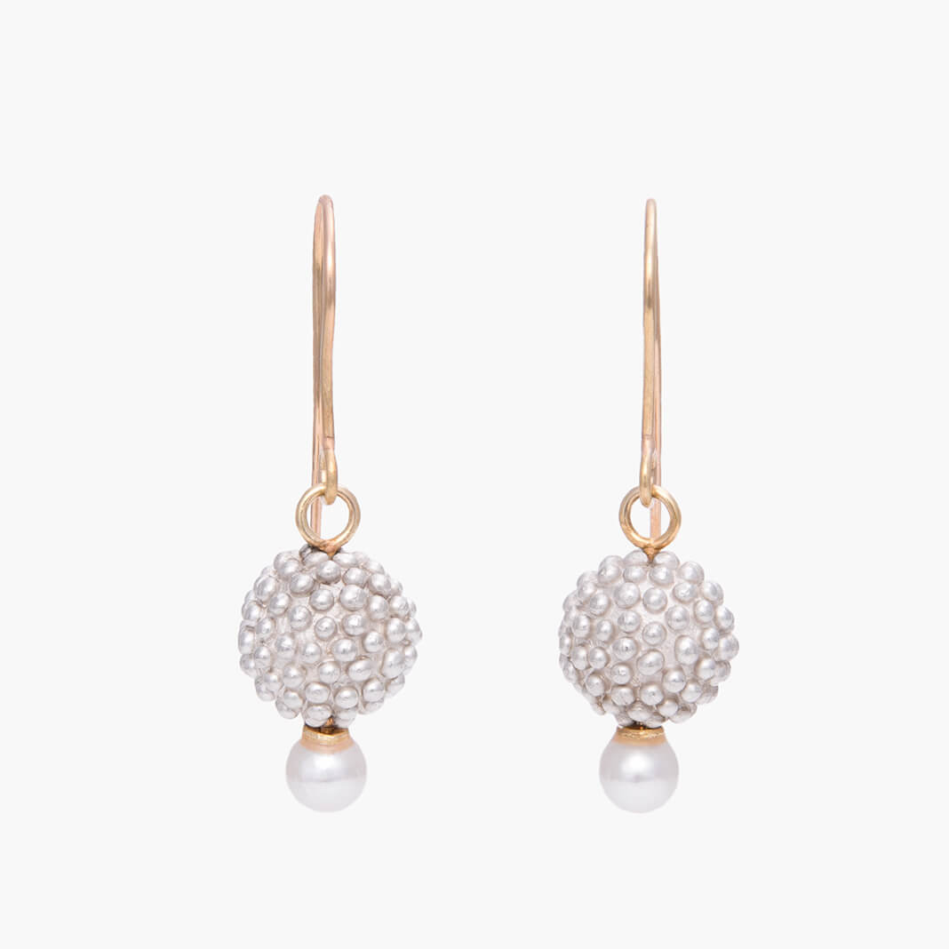 Ohrringe „erizo de mar”, Silber 925, Gold 750, Süßwasser-Zuchtperlen o_ea_21