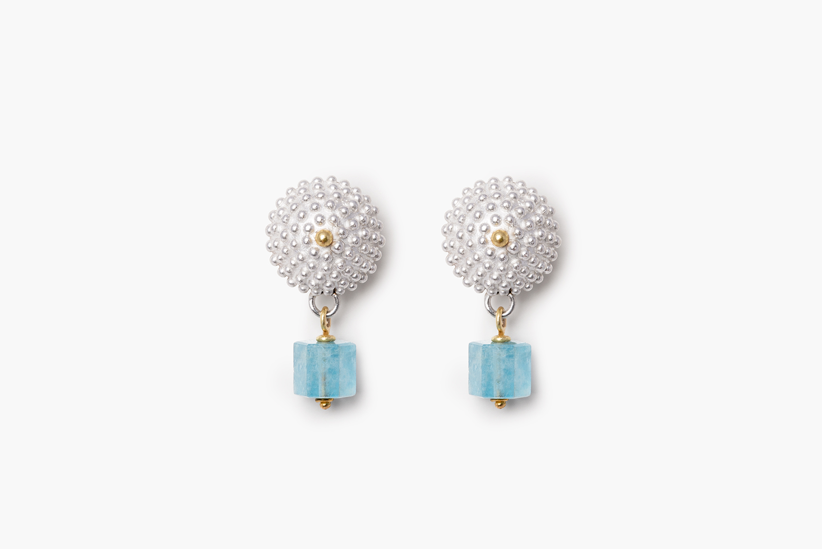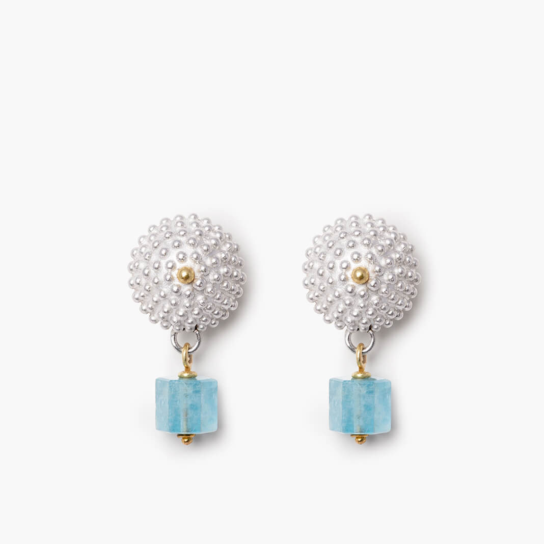 Ohrstecker „erizo de mar”, Silber 925, Gold 750, Aquamarin o_ea_22