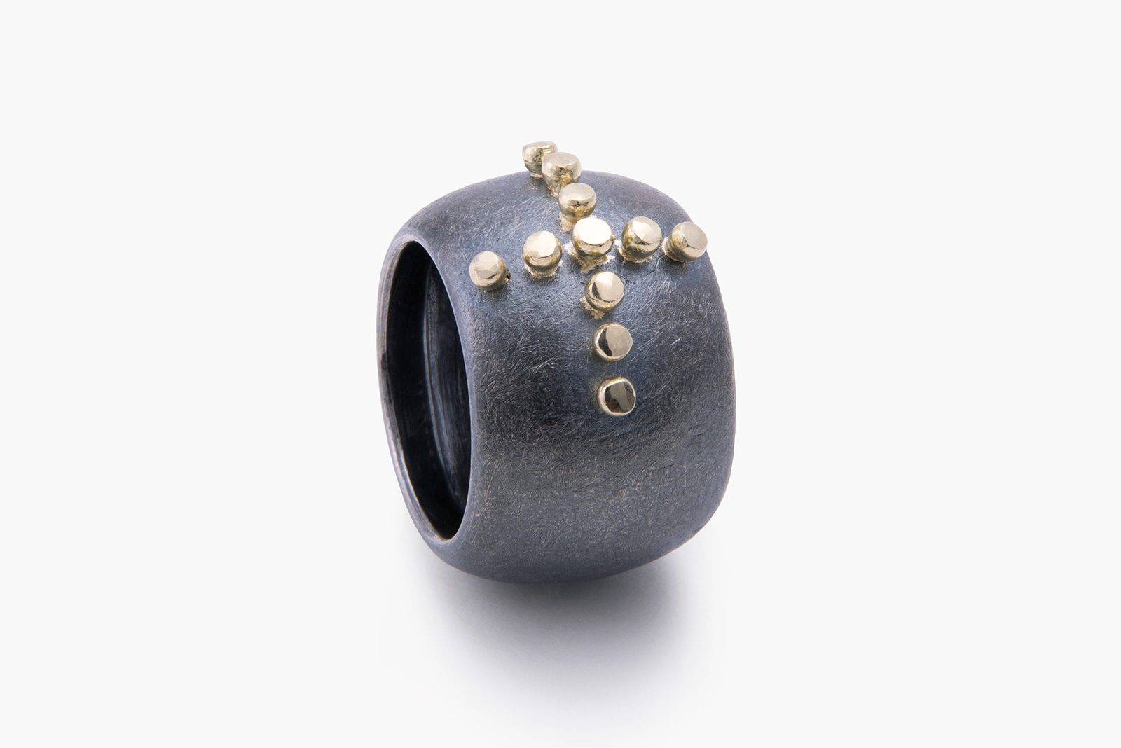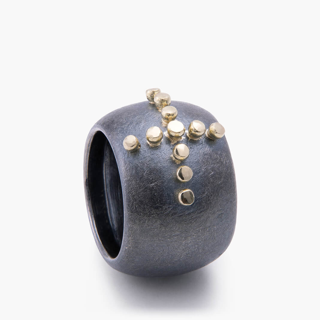 Kugelkreuzring, Silber 925 geschwärzt, Gold 750 r_ea_01