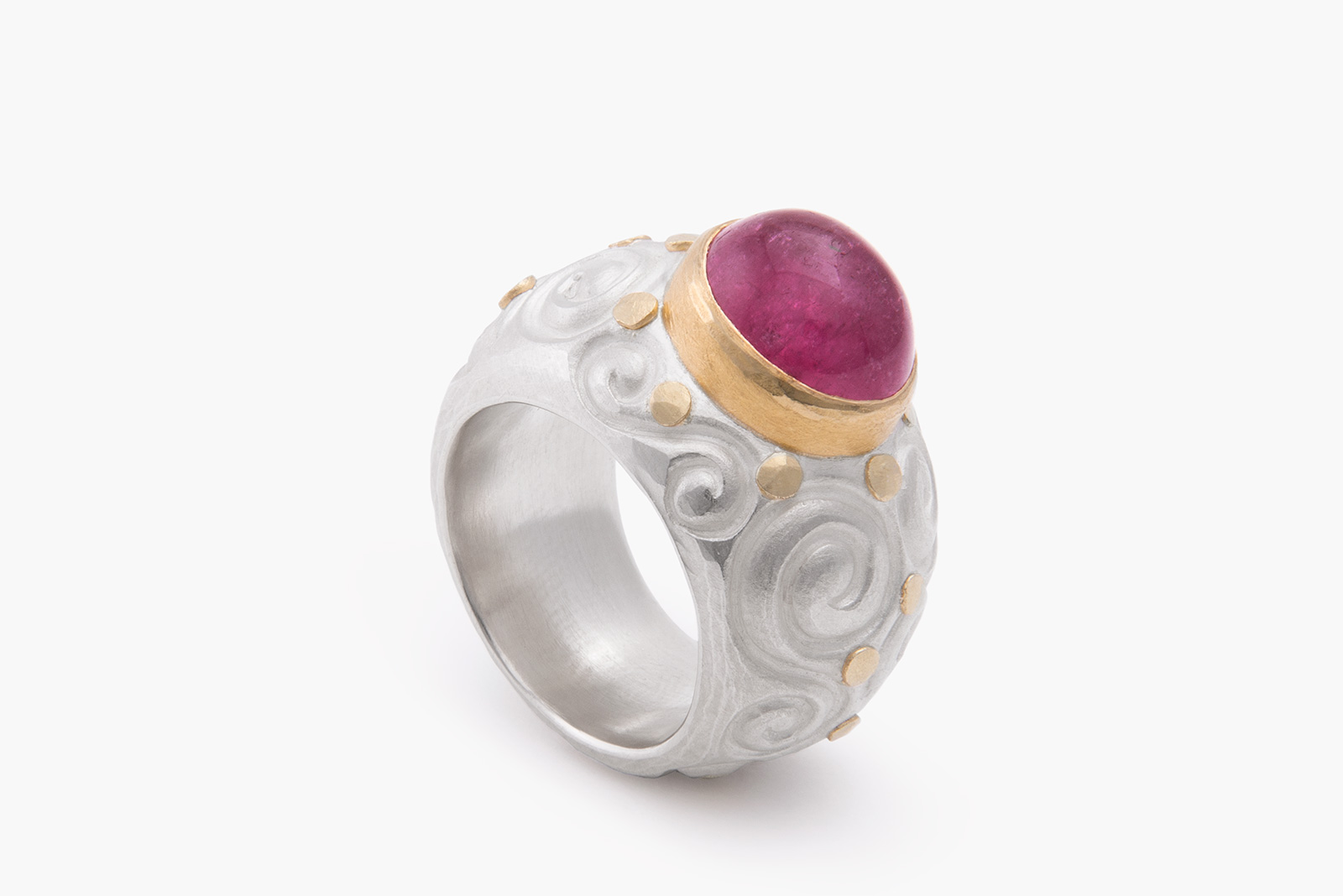 Ring, Silber 925, Gold 750, 900, rosa Turmalin r_ea_03