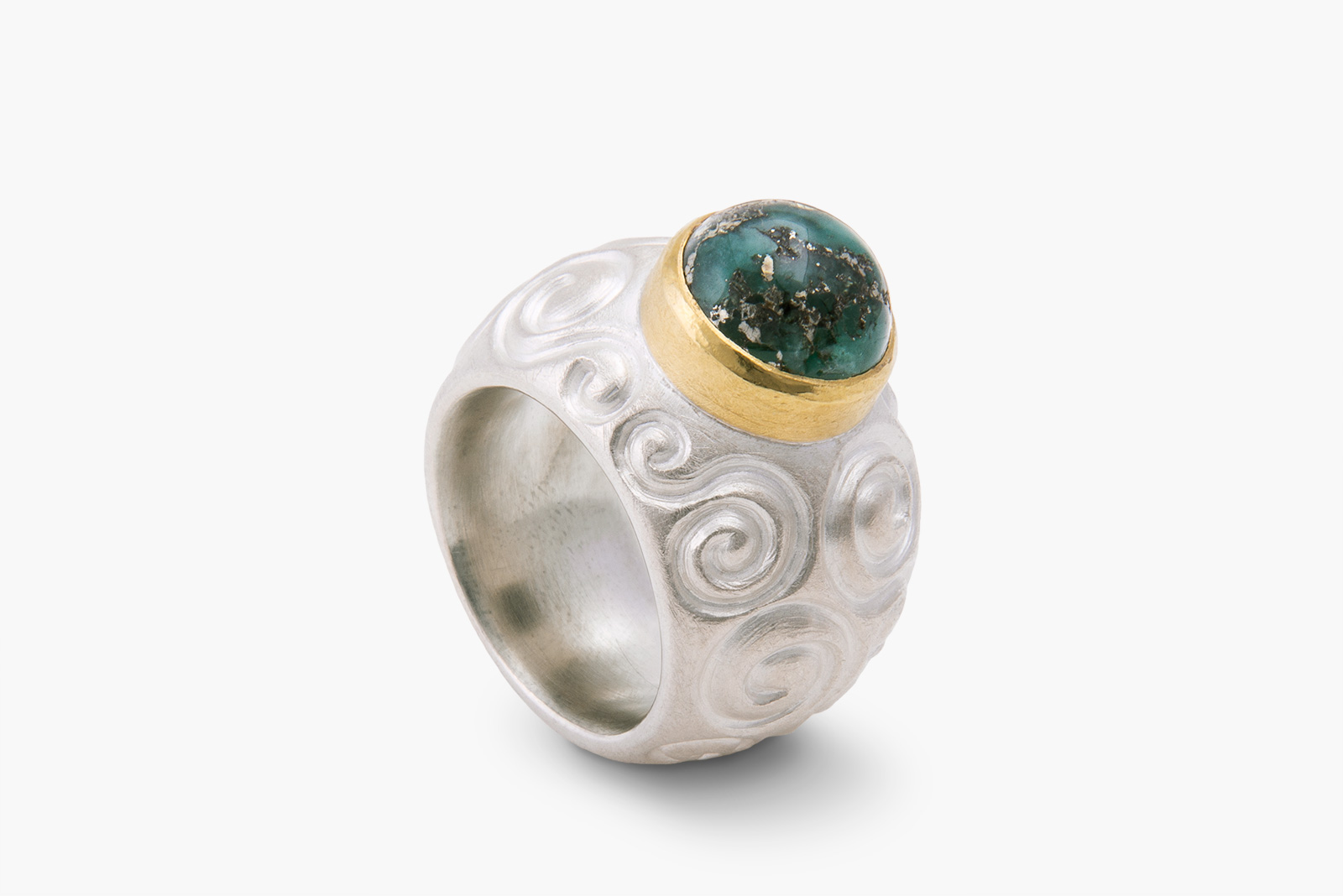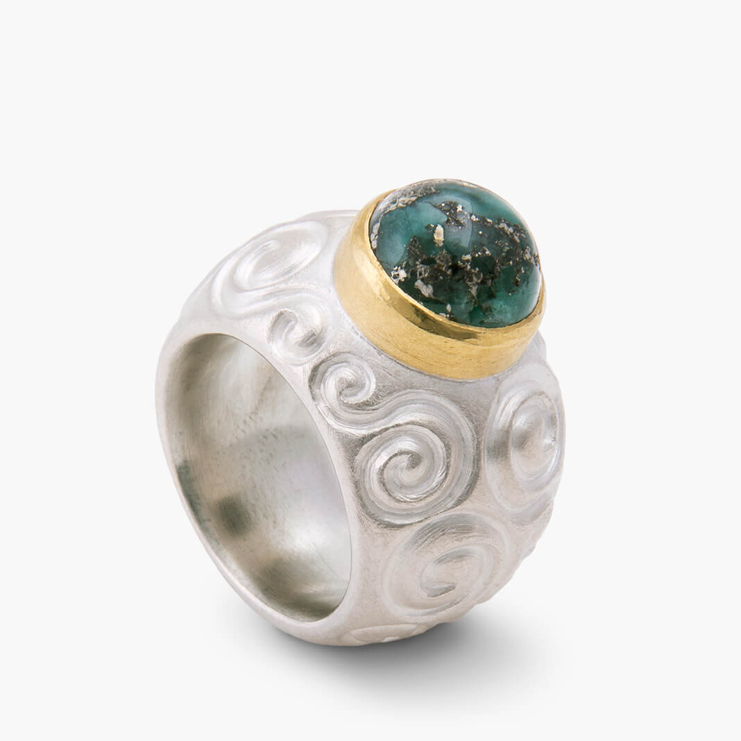 Ring, Silber 925, Gold 750, 900, Smaragd mit Pyrit r_ea_04