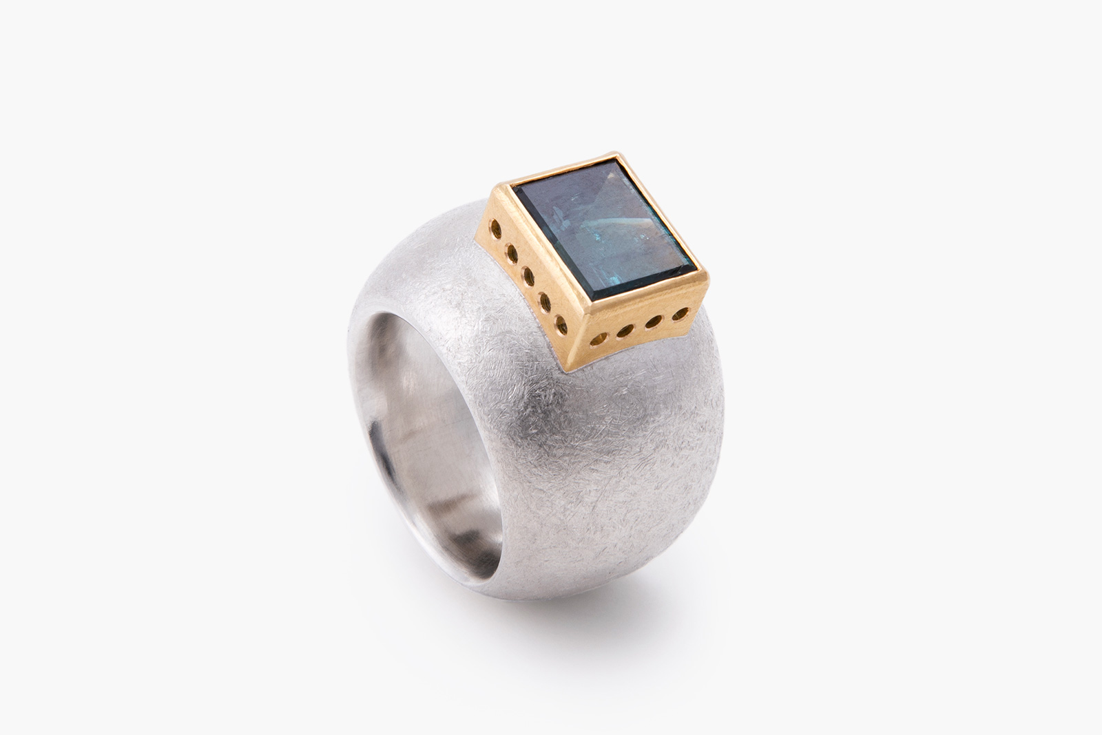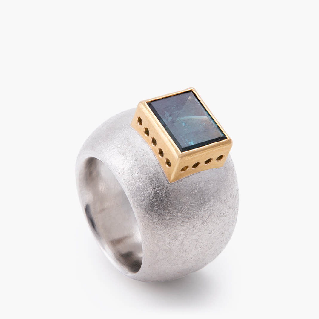 Kugelring, Silber 925, Gold 900, grüner Turmalin r_ea_06