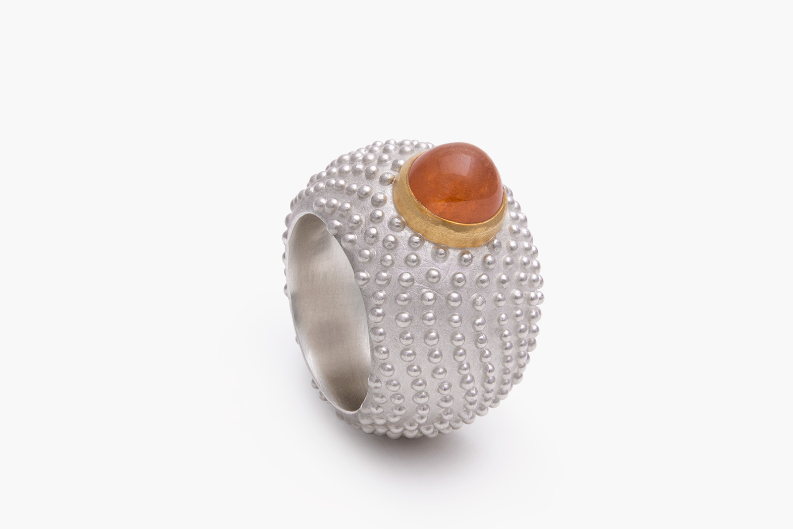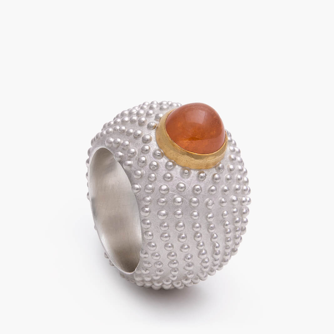 Ring „erizo de mar”, Silber 925, Gold 900, Mandaringranat r_ea_12