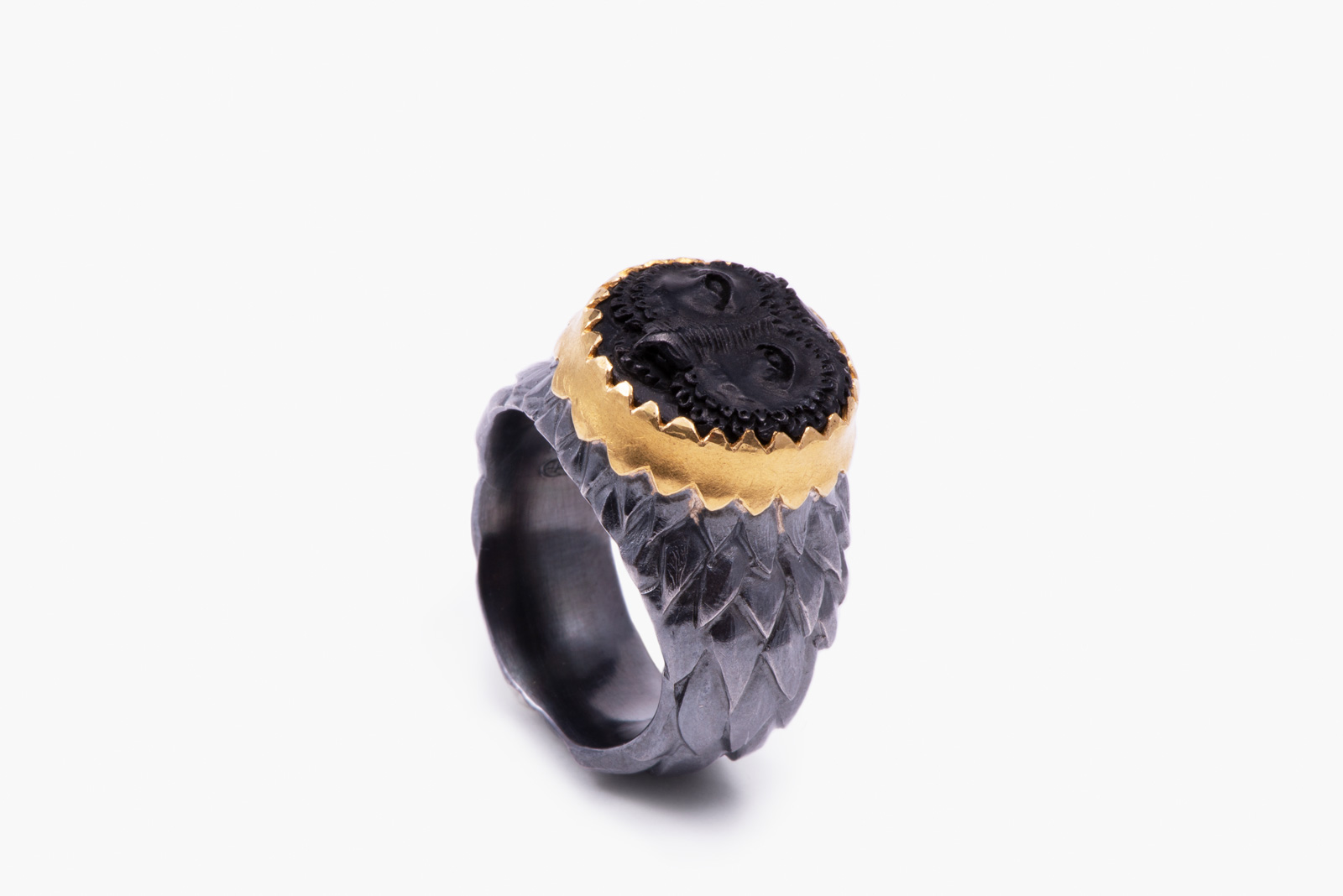 Ring, Silber geschwärzt, Gold, Eisen brüniert r_ea_34