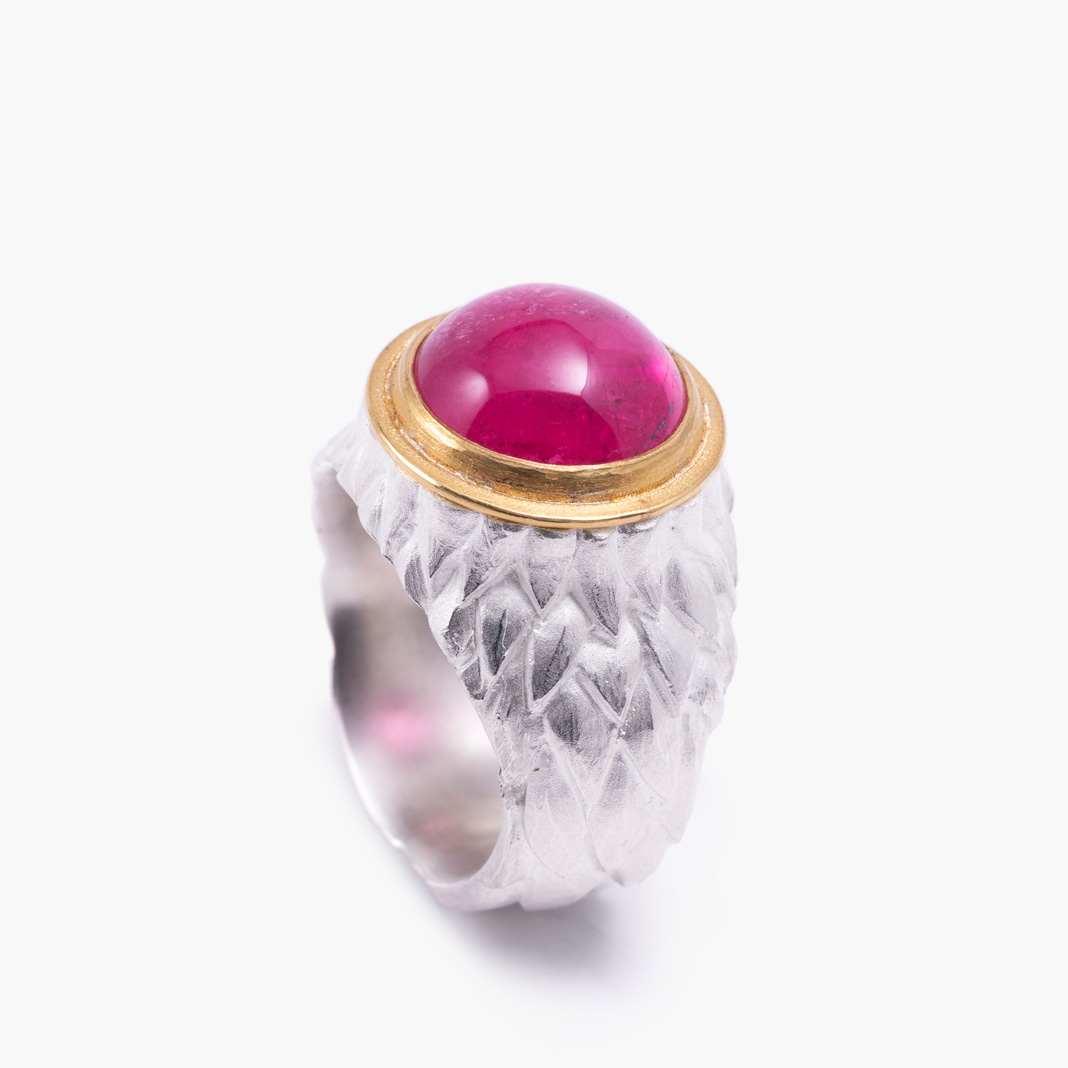 Ring „Federn”, Silber, Gold, Turmalin r_ea_44
