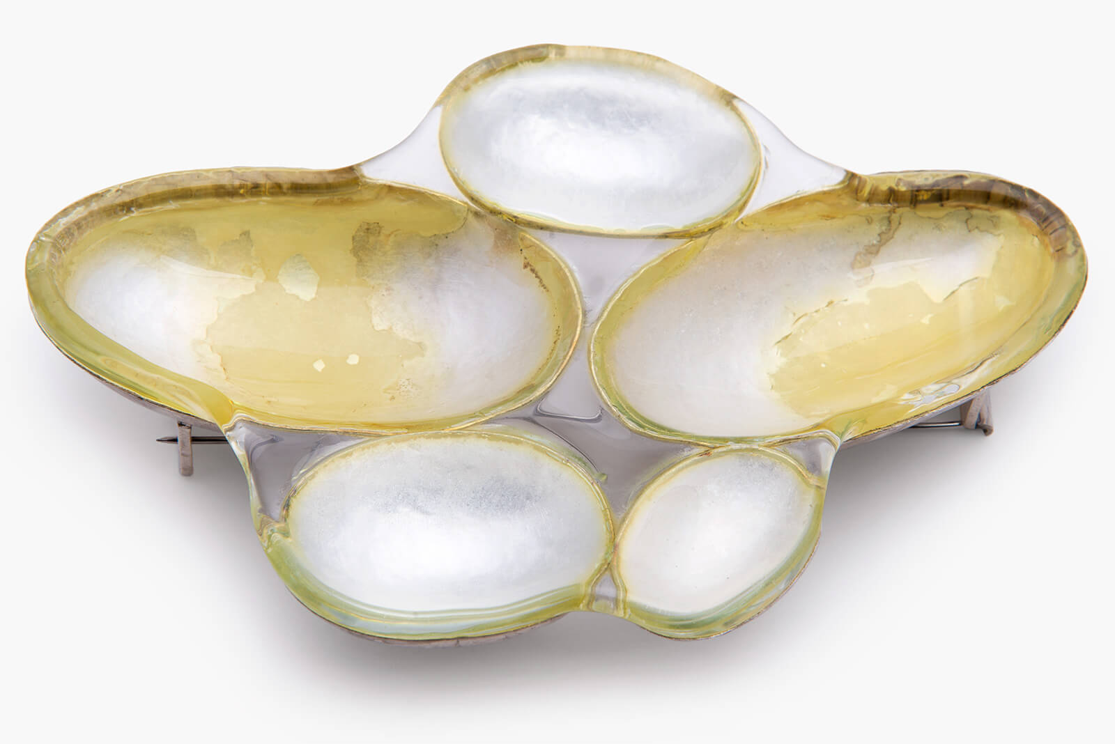 Glasbrosche, fünfteilig, Feinsilber, Glas, Edelstahlnadel b_cd_04