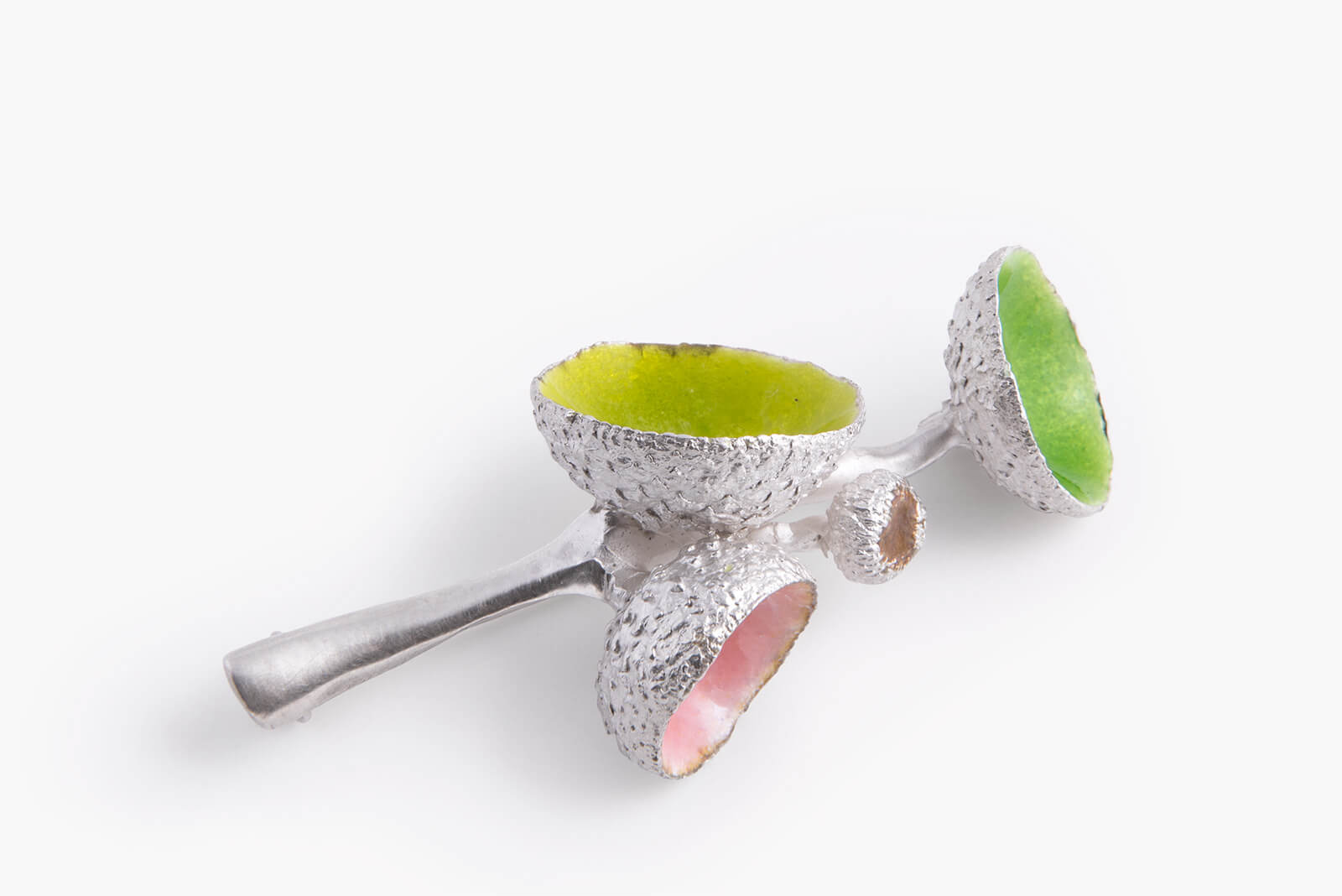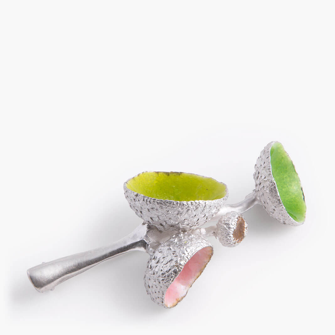 Eichelebrosche groß, Silber 925, Emaille, Edelstahlnadel, aus der Reihe „Eichenwald” b_cd_05