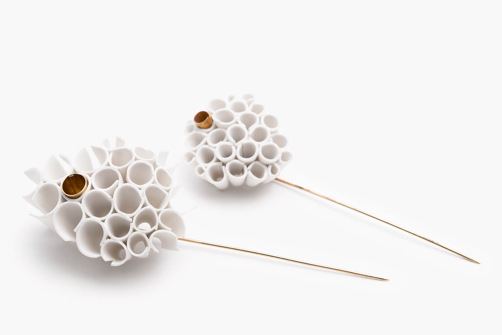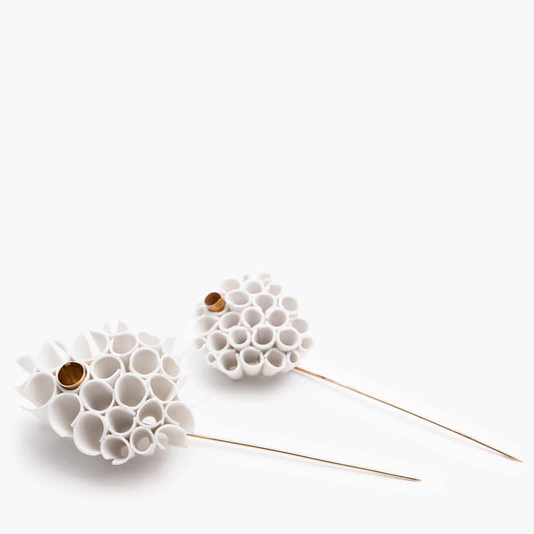 Anstecknadel „Anemone”, Porzellan, Gold 750 b_cd_07