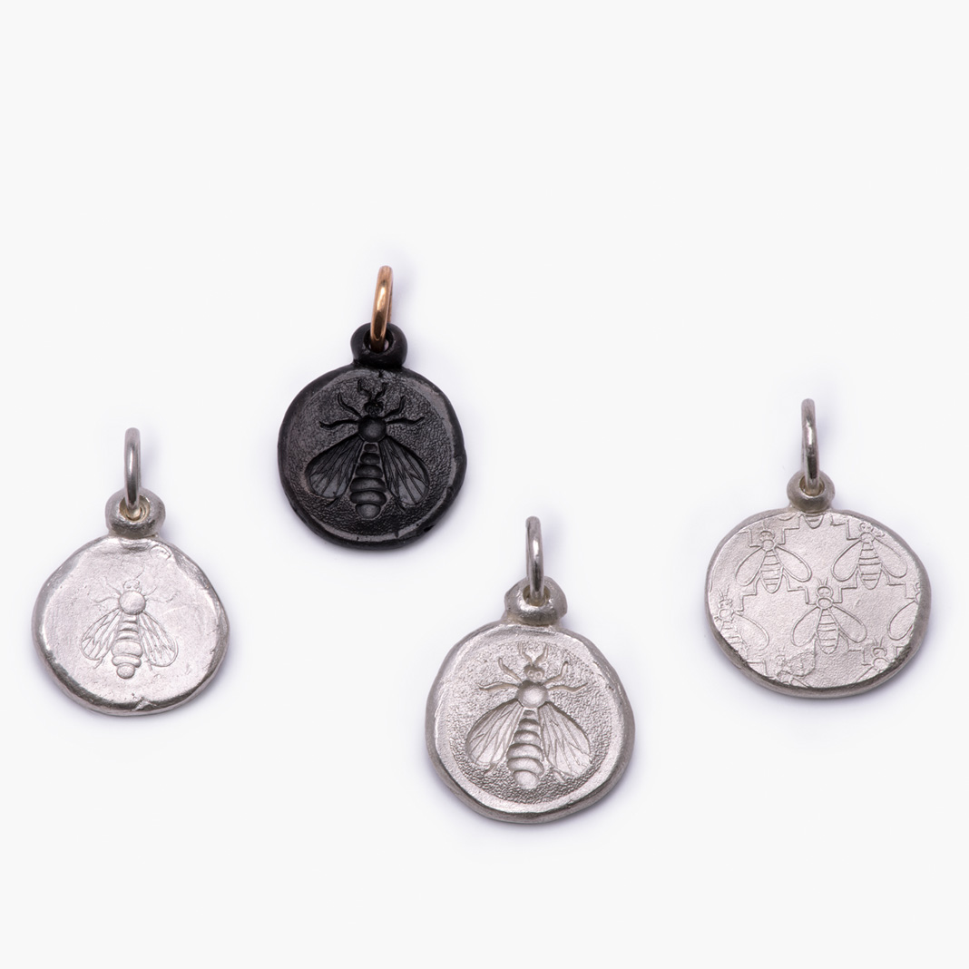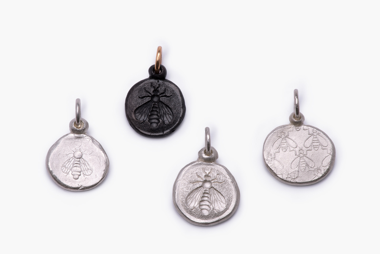 4 Bienenanhänger, Silber 925, Eisen mit Goldöse