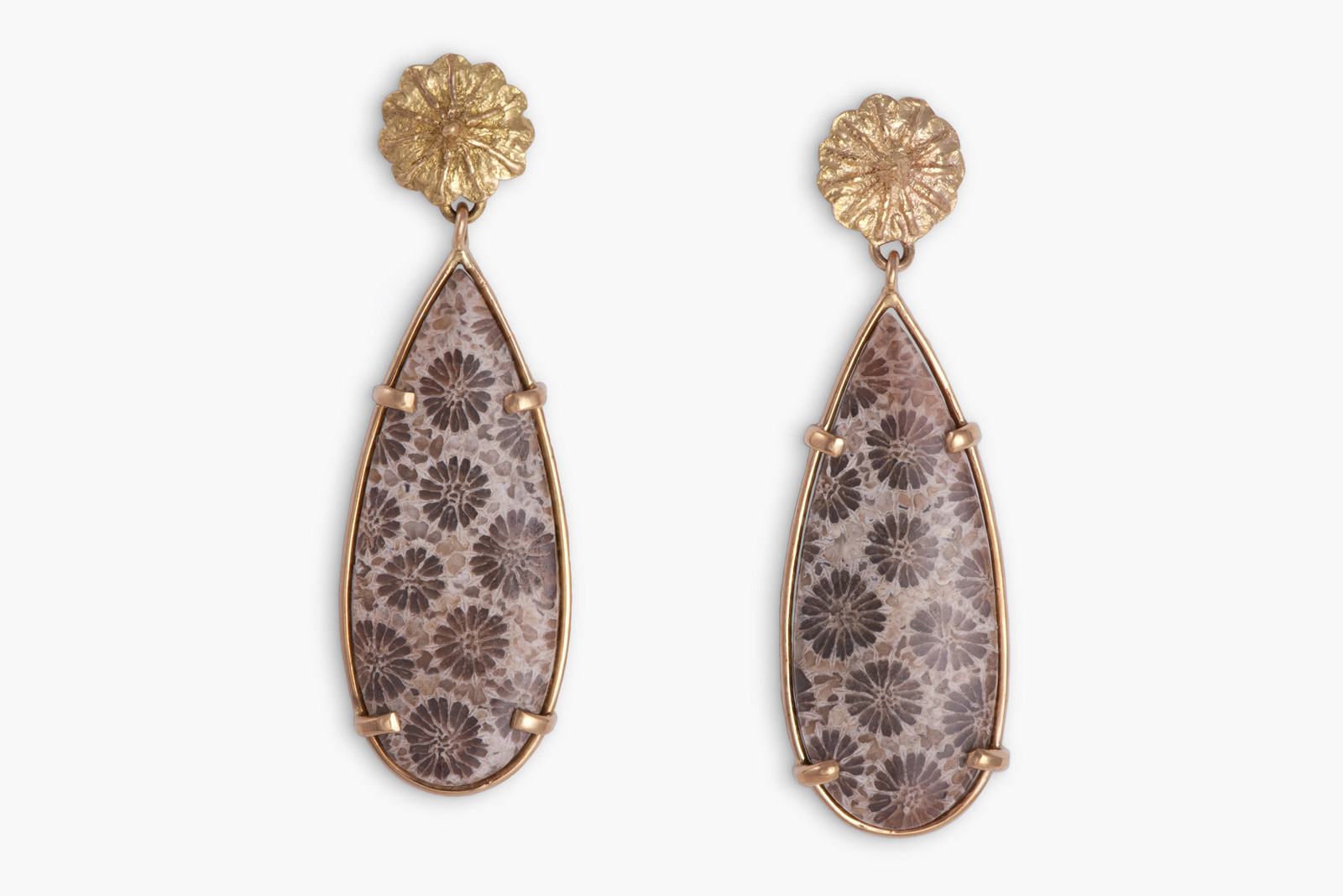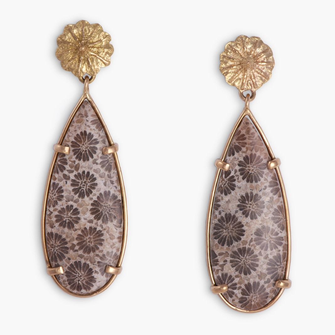 Ohrschmuck „Mohn“ Roségold 750, fossile Koralle o_cd_22 (Einzelstück, verkauft)
