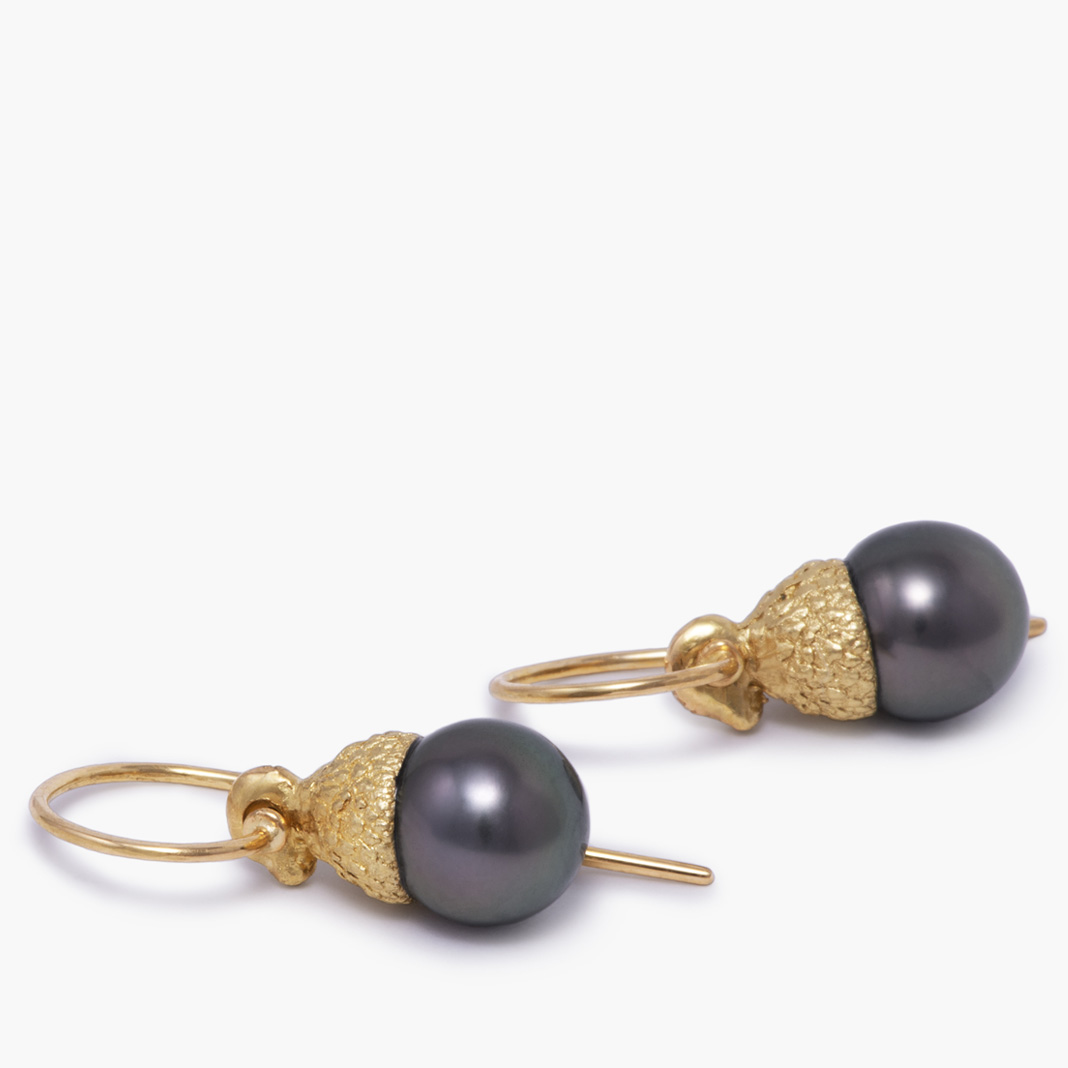 Ohrhänger, Gold 750, Tahitiperlen, aus der Reihe „Eichenwald” o_cd_23