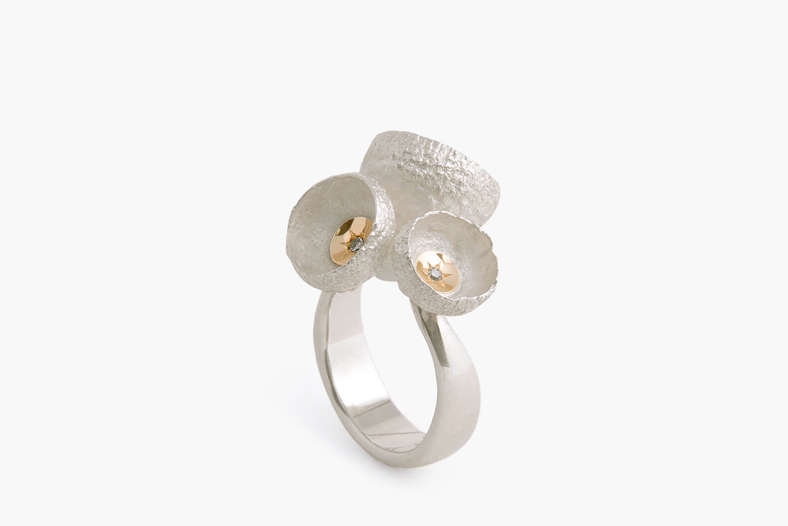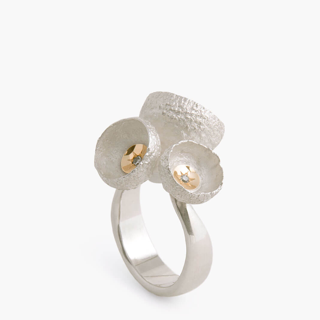 Ring, Silber 925, Gold 750, Brillant, aus der Reihe „Eichenwald” r_cd_10 (verkauft)