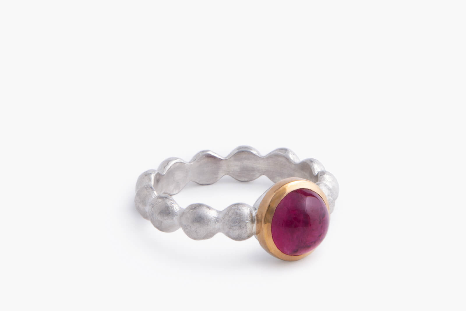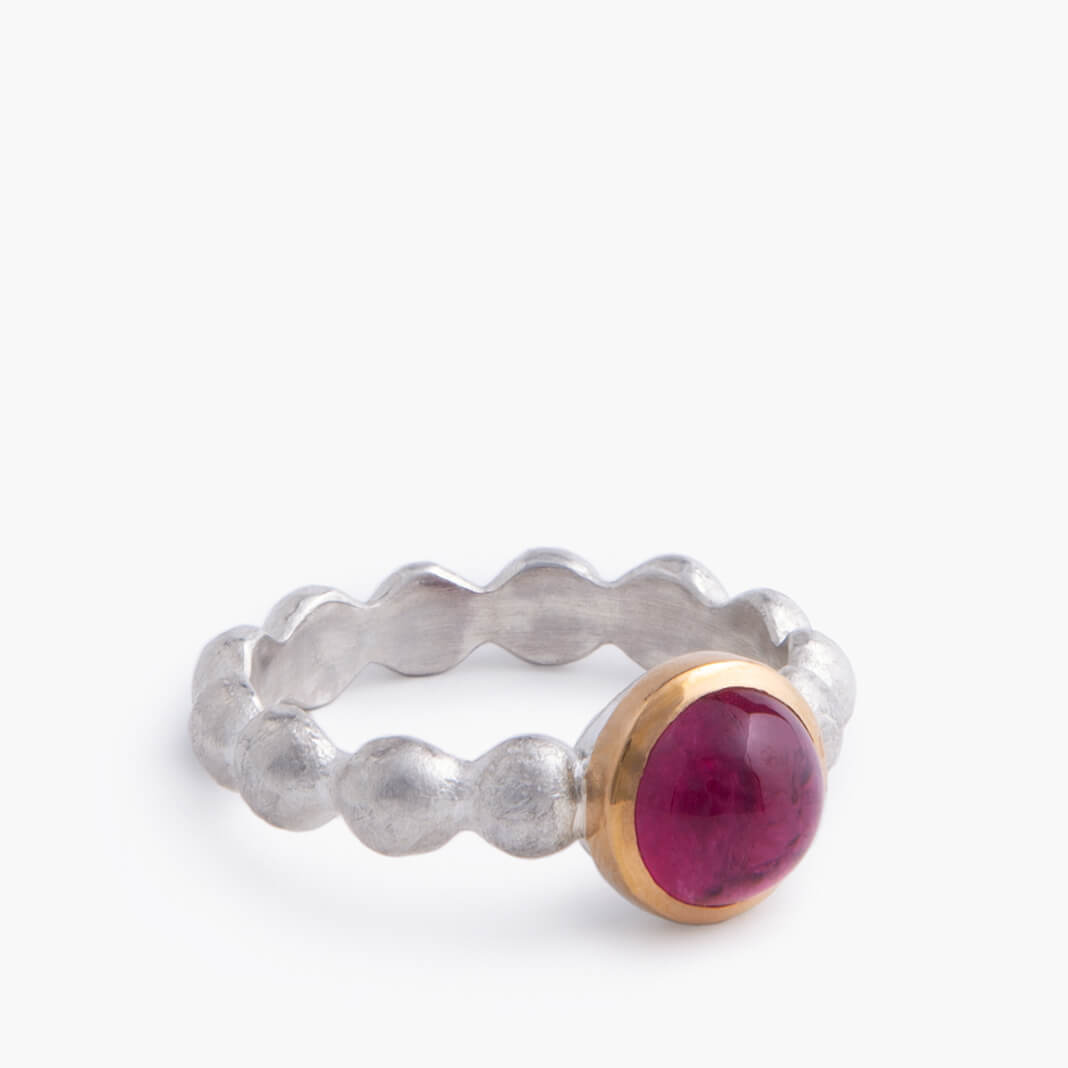 Ring Turmalincabochon pink, Silber 925, Goldfassung 900 r_cd_18