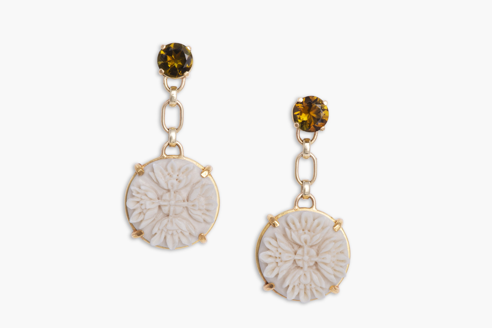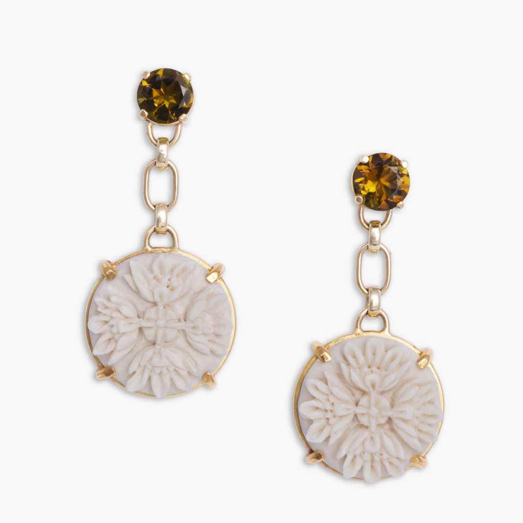 Ohrhänger, Gold 750, 565, Mammut-Elfenbein, Dravit o_ea_35