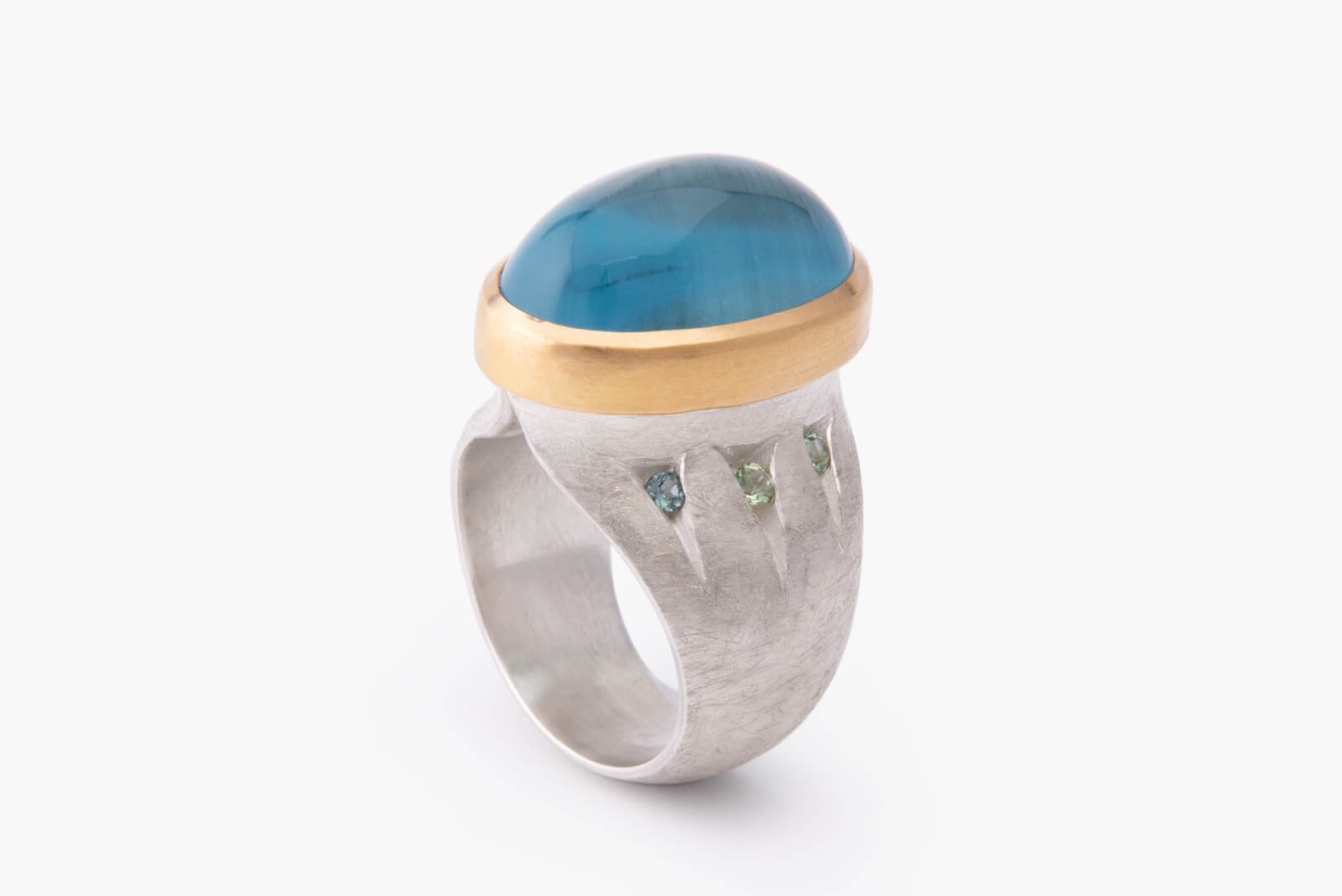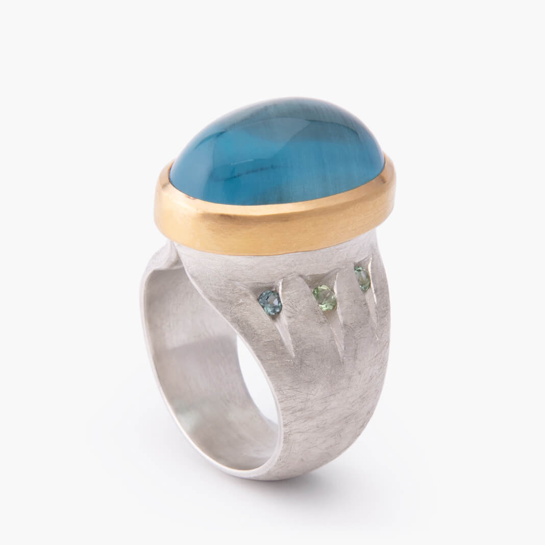 Ring, Silber 925, Gold 900, Aquamarin, Turmaline r_ea_18
