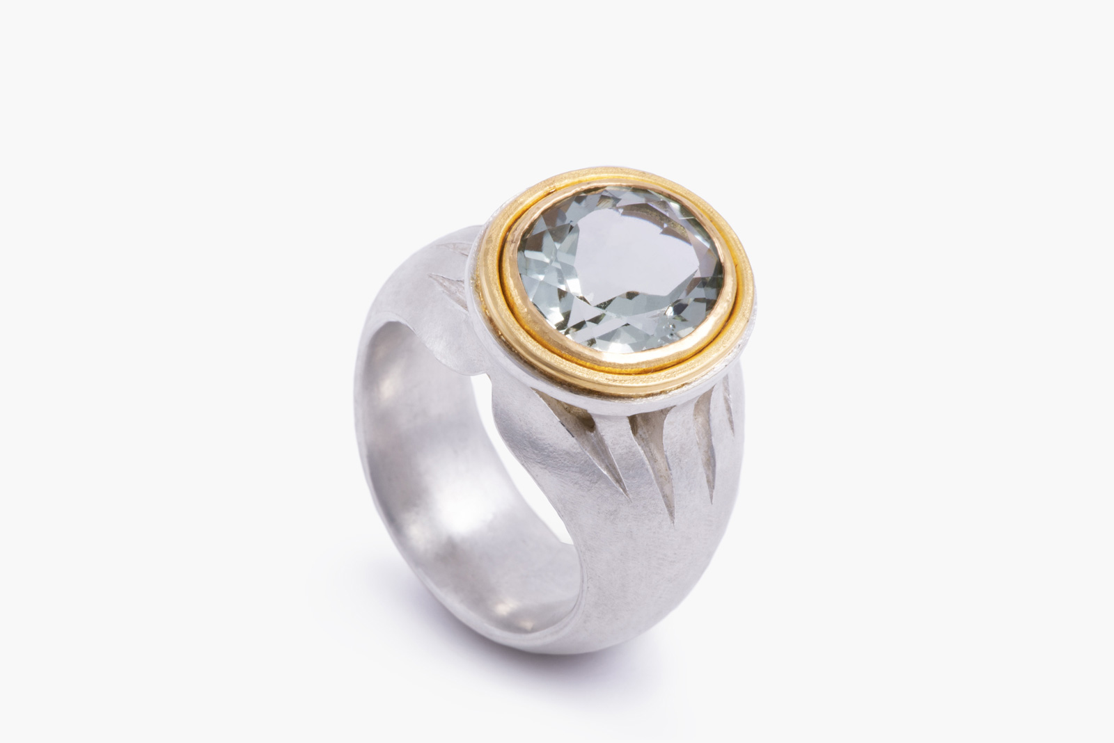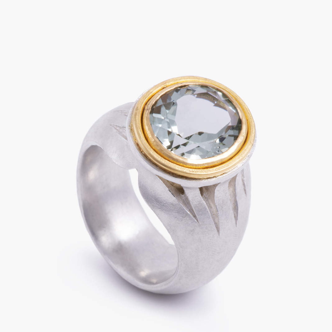 Ring „Gotik”, Silber 925, Gold 900, Prasiolith r_ea_22