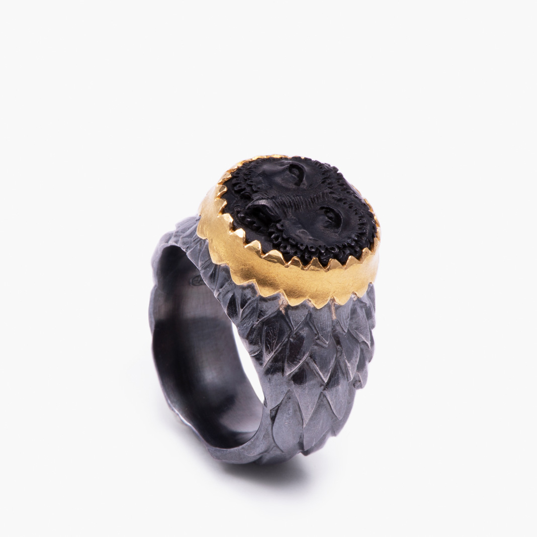 Ring, Silber geschwärzt, Gold, Eisen brüniert r_ea_34
