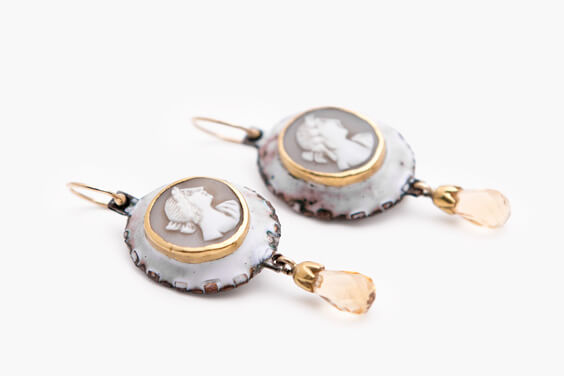 Gold, Kupfer, Emaille, Muschelgemme, Citrin